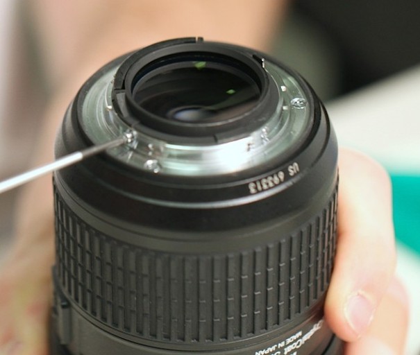 24-70mm f/2.8D或許是是尼康為數(shù)不多拆解較為簡單的鏡頭,尾部鏡片與整支鏡頭可以完全分離的,因此只要清除鏡尾的三顆固定螺絲就能取出整個后鏡片組。用氣吹吹走附著在鏡片上的灰塵,最后再組裝起來就算完成了。