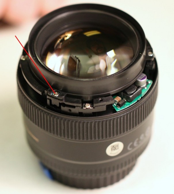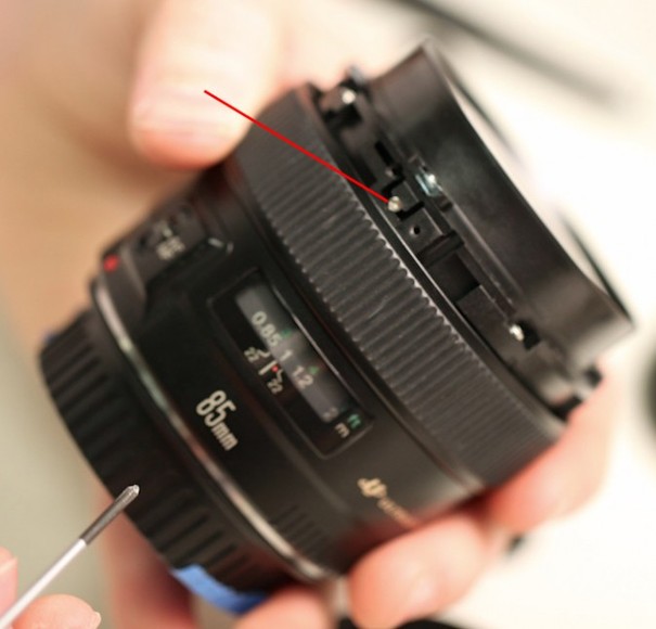 對焦環(huán)前面有三顆螺絲,三顆螺絲的作用是固定鏡頭正面外殼。