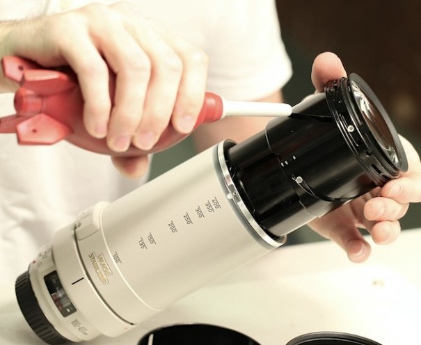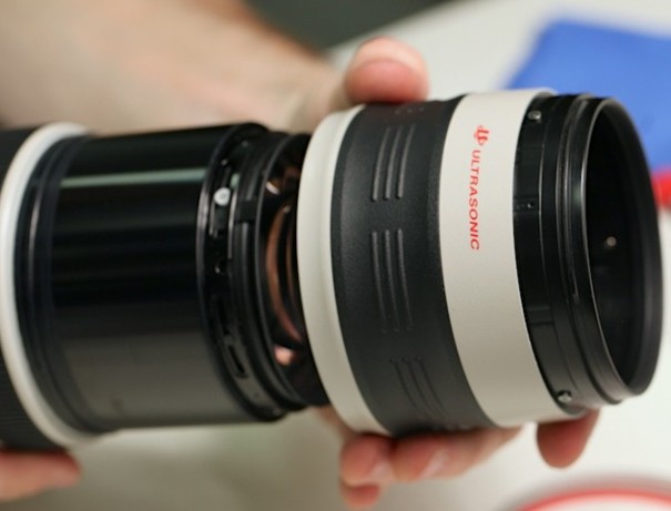 首先拆除鏡頭最前面的銀色銘環(huán)