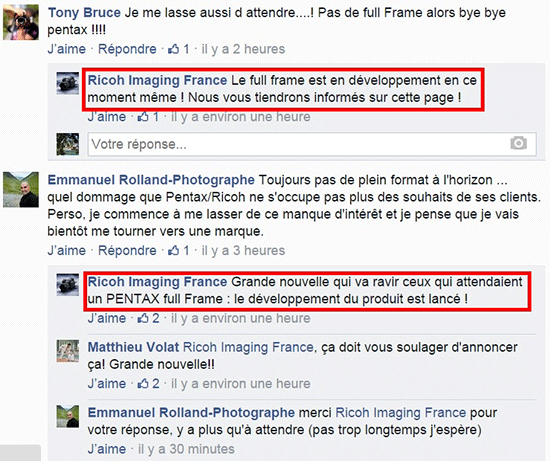 不過法國理光Facebook帳號(hào)最近確認(rèn),他們已著手研發(fā)賓得全畫幅相機(jī)。但值得一提的是,該帳號(hào)只說“PENTAX full Frame”未提及是否是單反相機(jī)。