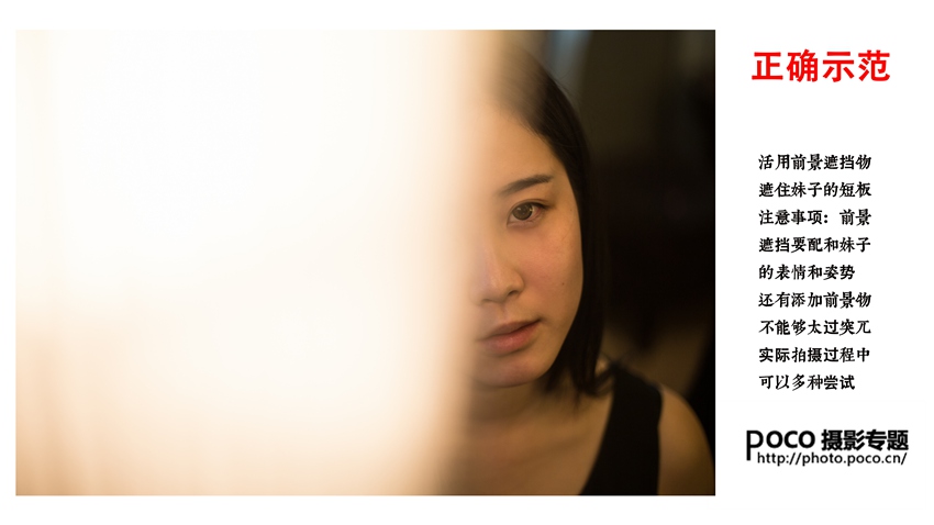 下圖就是利用房間的落地?zé)魧γ眉埖哪樳M(jìn)行部分遮擋,再讓鏡頭靠近落地?zé)魪亩鴮崿F(xiàn)前景的徹底虛化。加上柔和的燈光,和50mm的標(biāo)準(zhǔn)視角讓肉感得以有效消除。如果有合適的長焦鏡頭也更好,長焦特有的畫面壓縮感也會有把人拍瘦的錯覺。
