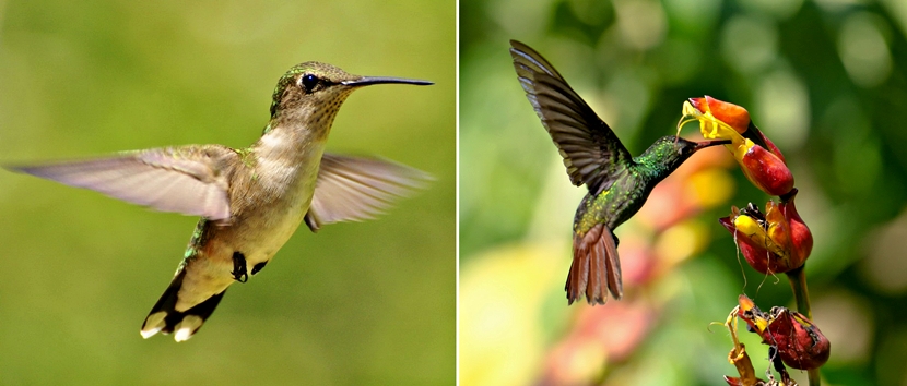 一、凝固高速動作  要凝固到高速的動作,手段就是“高速快門”(或可用閃光燈,但那是另一個故事),然而有些動作是極為快速,例如上圖兩只都是蜂鳥 (每秒可拍翅膀達80次),第一張是以1/1000秒快門拍攝,但依然看到翅膀的動態(tài)模糊,而第二張則用上 1/8000秒超高速快門來拍攝,才可以凝固到動作。但在如此高速快門下,即使是陽光充沛而光圈也達到f/2.8,仍必須推高ISO至1000才足以達到適當曝光。假如你所用的鏡頭光圈更小的話,那么ISO就必須要更高,才足以維持高速快門了。