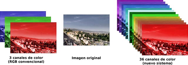 近日西班牙格拉納達(dá)大學(xué)和意大利米蘭理工大學(xué)合建的一個(gè)研究團(tuán)隊(duì)利用“Transverse Field Detector(橫向場(chǎng)檢測(cè)器,下稱(chēng)TFD)”技術(shù),成功研發(fā)一種擁有36種獨(dú)立色彩通道的圖像傳感器,且無(wú)需借助任何輔助濾鏡系統(tǒng),其色彩敏感度更是傳統(tǒng)傳感器的12倍。