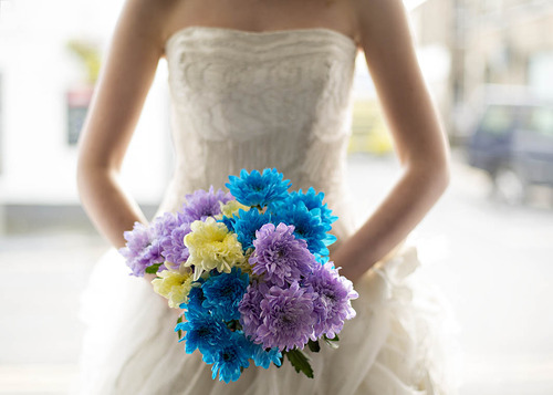 花球的位置不要太高,也不要太低,大致略低于肚臍為宜。保持手臂微彎,手臂與膚色都會顯得較好看,微胖的新娘也可以達(dá)到遮擋肚腩的目的。