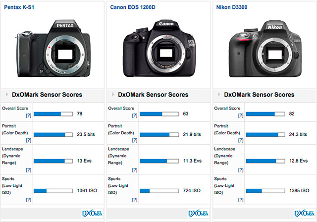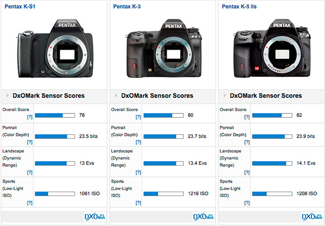 DxOMark實驗室公布賓得K-S1傳感器測試結果,綜合得分78分,在與K-3、K-5 IIs這樣的更高級機型對比中不落下風。