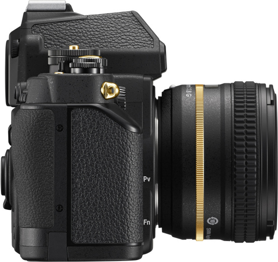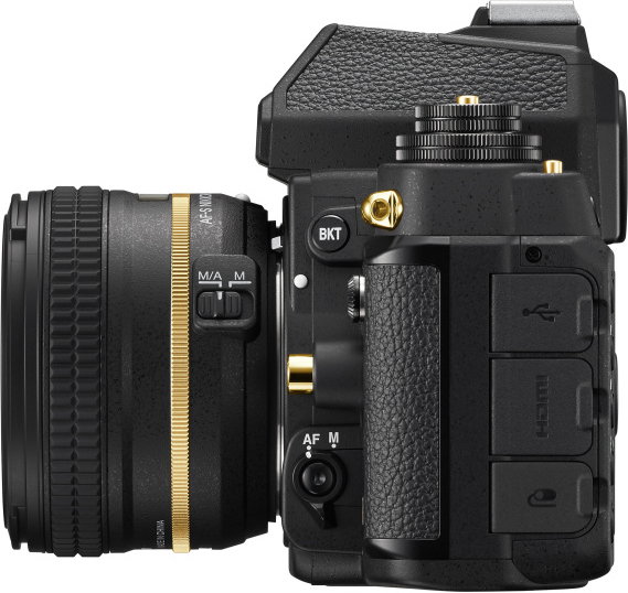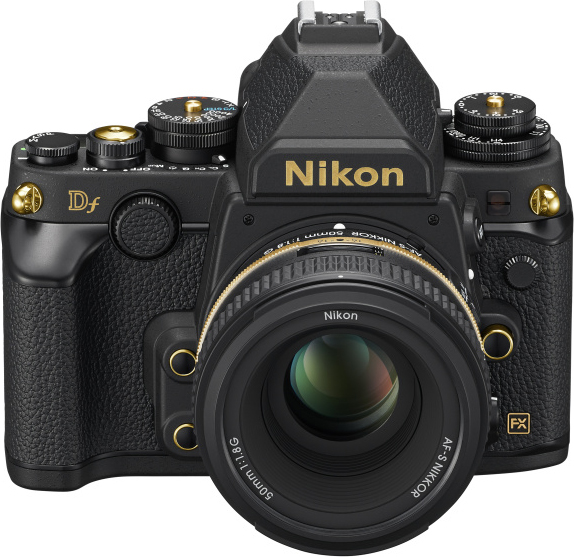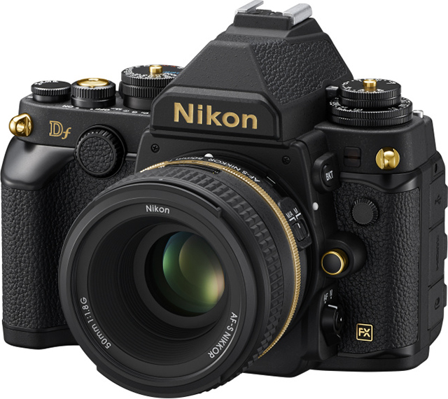“黑金版”Df采用黑色機(jī)身搭配金色logo及部分按鍵的設(shè)計(jì),其中正面的“Nikon”、“Df”標(biāo)志、相機(jī)背帶孔,以及頂部的模式轉(zhuǎn)盤釋放鍵和快門按鍵均使用了黃金元素,而背面按鍵則與普通版一致。相機(jī)規(guī)格與普通版并無差別,依舊采用1625萬像素全畫幅傳感器,EXPEED 3圖像處理器,最高感光度ISO 204800,39點(diǎn)對(duì)焦系統(tǒng)。