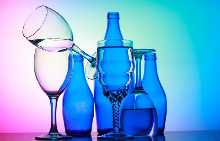 6、背景交錯效果的玻璃杯 在淘寶產(chǎn)品高腳酒杯中倒入半杯無色透明液體,將它擺在墊有黑色金絲絨的立方體上,在較遠距離的背景上放置兩張紅、白色拼合的背景紙,使拼合的中縫居中,并用燈光照明,再從后下方向玻璃杯打透射光,從正面取景拍攝,由于盛有飲料的杯體部分具有透縫效果,將背景的影像反投到前方,所以產(chǎn)生了紅白交錯的視覺效果,感覺奇特?!?/p>