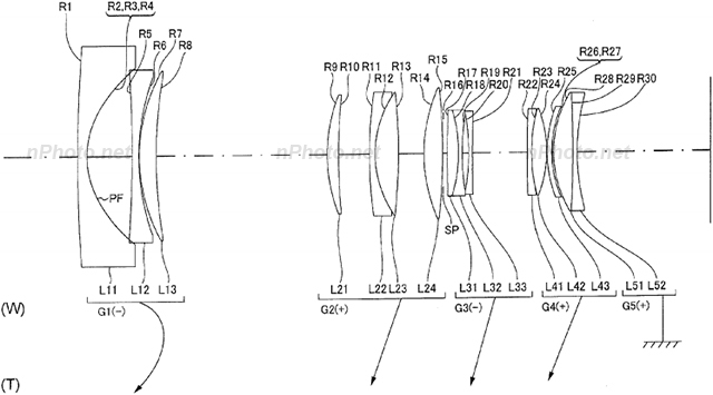 尼康衍射光學(xué)鏡片技術(shù)起步較晚,相關(guān)專利可追溯到2002年,不過好在一直沒有中斷,到今年發(fā)布300mm f/4E PF真的可以算是十年磨一劍。這中間尼康也對PF在變焦鏡頭中的應(yīng)用做了研究。