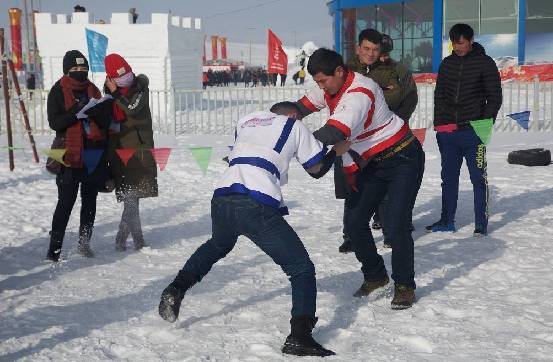 2017年1月7日,新疆昭蘇縣2017年“雪之戀”冰雪旅游節(jié)在汗騰格里滑雪場盛大開幕。本屆冰雪節(jié)以速度滑雪、雪地自行車慢騎、雪地摔跤以及冰雪商貿(mào)、冬季攝影等活動板塊組成。在當(dāng)天的冰雪旅游節(jié)雪地摔跤比賽上,來自全縣的20余名摔跤能手參登臺打雷,成為本次活動的亮點(diǎn),吸引了諸多游客觀看。除此以外,活動期間組委會還舉辦趣味雪雕創(chuàng)意大賽,40座雪雕作品參加了評比活動。陳榮江 廖冉冉 李文武/攝影報道