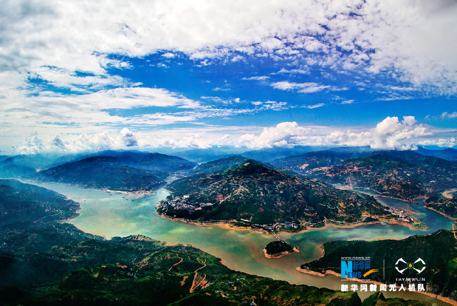 近日,重慶進(jìn)入“雨季”模式。一場暴雨之后,長江三峽瞿塘峽呈現(xiàn)云卷云舒的自然美景。圖為航拍視角下的雨后瞿塘峽,云層沿著山脈的弧線繚繞,長江水還留有暴雨的痕跡。新華網(wǎng)發(fā)伍北海 攝