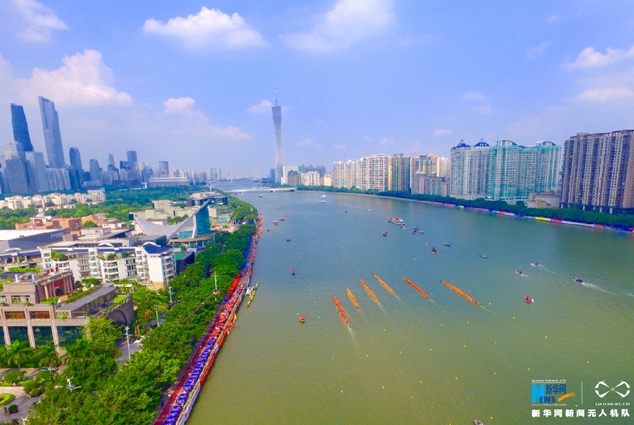 2017年廣州國(guó)際龍舟邀請(qǐng)賽于11日在珠江中大北門廣場(chǎng)至廣州大橋之間河段舉行(即海印橋至廣州大橋之間河段)。賽事共收到世界各地的130條龍舟隊(duì)報(bào)名,創(chuàng)歷史新高,約5000名運(yùn)動(dòng)員參加。圖為航拍2017年廣州國(guó)際龍舟邀請(qǐng)賽。新華網(wǎng)發(fā)藍(lán)遠(yuǎn)鋒攝
