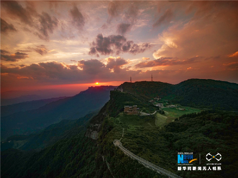 重慶金佛山是國(guó)家AAAAA級(jí)旅游景區(qū),山勢(shì)雄奇秀麗,景色旖旎迷人。每到夏秋晚晴時(shí)節(jié),金佛山上便會(huì)上演“朝霞對(duì)夕陽(yáng),濃霧對(duì)晴川”的自然美景。圖為無(wú)人機(jī)航拍金佛山日出美景。新華網(wǎng)發(fā)王正坤攝