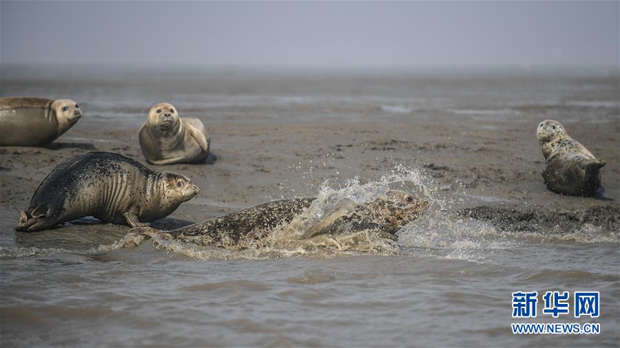 3月25日,一群斑海豹在遼寧盤錦雙臺(tái)河口三道溝海域的灘涂上休息。新華社記者潘昱龍攝