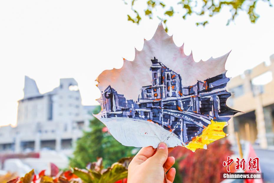 在這個(gè)落葉紛飛的深秋時(shí)節(jié),大連東軟信息學(xué)院三位女同學(xué)將美妙的圖案繪在了落葉上,用創(chuàng)意給落葉開發(fā)出了另外一種美。這些落葉畫分別呈現(xiàn)了學(xué)校里的石刻、火車頭、鐘樓、圖書館等標(biāo)志性景觀。