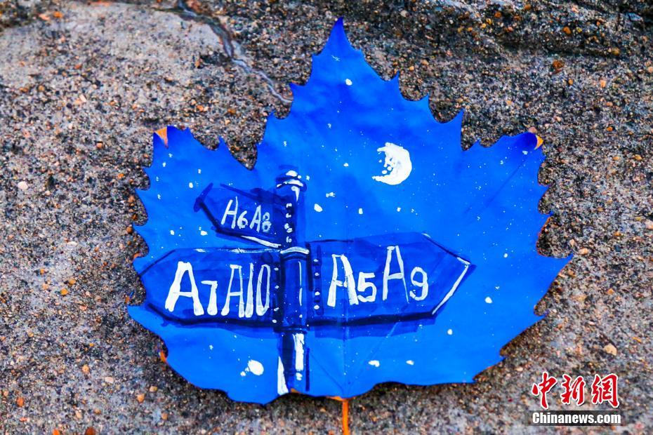 談到創(chuàng)作思路,作品的主要負(fù)責(zé)人許嘉玲說(shuō):“今年的梧桐落葉格外好看,因而就想到要在葉子上畫些什么?!毕敕ɡ寺?,但實(shí)際操作起來(lái)可沒(méi)那么簡(jiǎn)單,在選擇畫筆時(shí)她們就遇到了難題,“普通的馬克筆不容易上色,而且顏色也并不鮮亮,水粉在繪制時(shí)又干的特別快,還容易掉渣,于是我想到了專業(yè)課上老師提到過(guò)的丙烯材料,試過(guò)之后發(fā)現(xiàn)它干得很慢而且不易掉渣?!?文/楊毅 圖/許嘉玲
