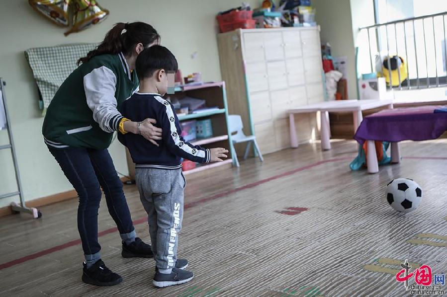 隨著康復干預的推進,于瑩開始走入孩子們的世界。讓于瑩記憶深刻的,是一個叫皮皮(化名)的小男孩。初次見面,當于瑩要去接近他時,對陌生人的抗拒使他本能地跑開了,皮皮的媽媽生氣地打了他一巴掌,但他也并未像其他的孩子一樣嚎啕大哭,而只是輕輕抹去眼淚,繼續(xù)玩手中的玩具小汽車??粗てぞ髲姷难凵?,于瑩開始思考用什么樣的方式才能讓皮皮接納自己。結(jié)合針對皮皮的教學計劃,于瑩也開始試著去和皮皮進行互動,比如一起做游戲、玩玩具。起初皮皮也不愿配合,但突然有一天,皮皮把他的小汽車放到了于瑩手中,當于瑩從驚訝中緩過神,皮皮已經(jīng)抱住了于瑩。從那一刻起,于瑩跟皮皮成為了好朋友。中國網(wǎng)記者倫曉璇 攝