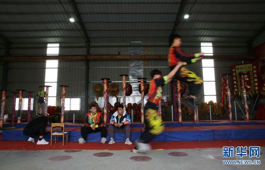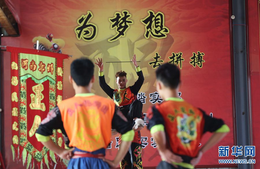 17歲的趙丁康(右)練習(xí)舞獅三年,除了自己的花銷,每月往家里郵寄一千元。