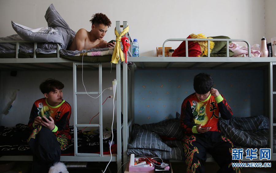 2019年3月16日,18歲的趙夢豪在訓(xùn)練場邊休息,由于小時候在少林寺學(xué)過武術(shù),大家叫他“和尚”,“和尚”練習(xí)舞獅三年,現(xiàn)在是主力隊員。