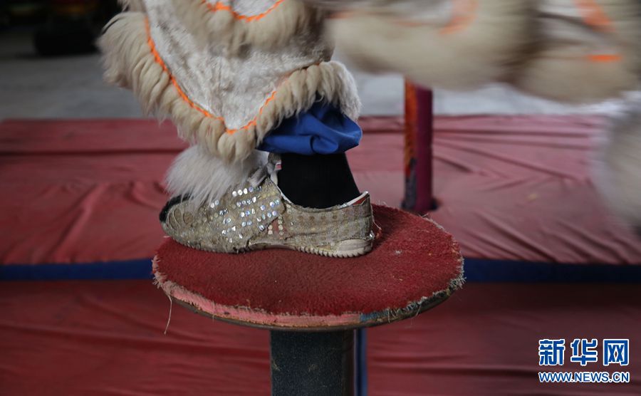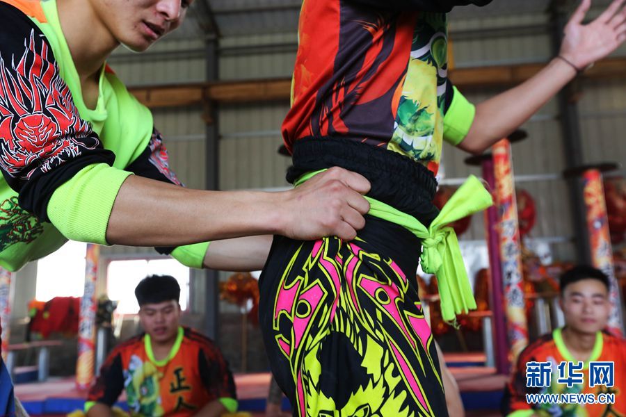 腰帶是聯(lián)系獅頭獅尾的“紐帶”,也是獅尾給獅頭傳遞動作信號的位置,雙手一抖,意味著動作的開始。