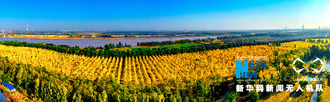 航拍的濟(jì)南黃河銀杏林。新華網(wǎng)發(fā)(宋廣興 攝)