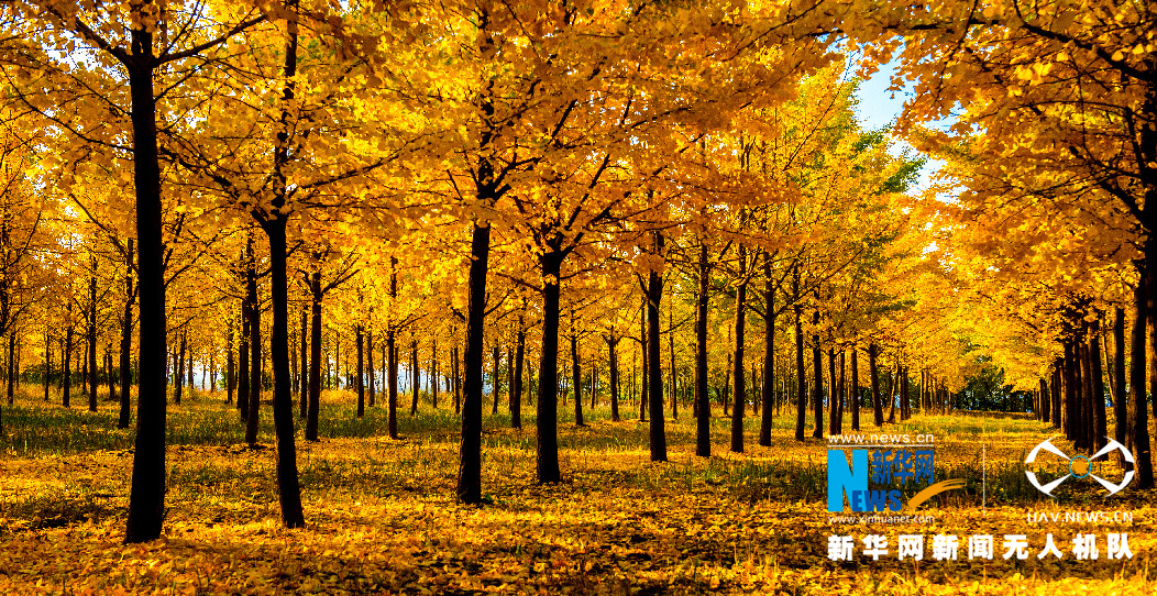 初冬時(shí)節(jié),山東省濟(jì)南市槐蔭區(qū)黃河河務(wù)局段黃河堤防南側(cè)銀杏林換上了金色的“衣裳”,一片片金黃色的銀杏葉或是在樹枝上流連,或是鋪滿了大地,層林盡染,如詩(shī)如畫。