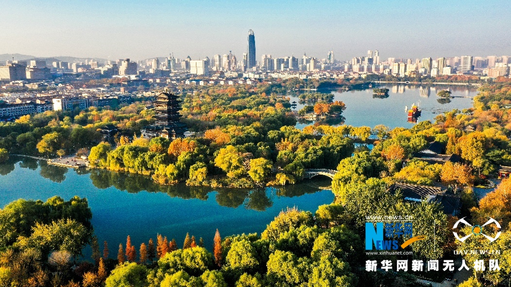 ????航拍的濟(jì)南大明湖。新華網(wǎng)發(fā)(宋廣興 攝)