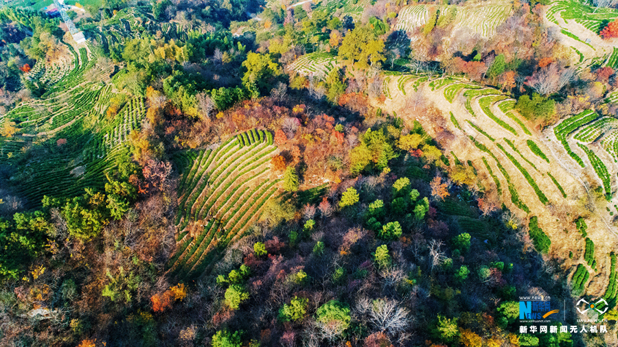 這是11月24日航拍的安徽省青陽(yáng)縣陵陽(yáng)鎮(zhèn)黃石溪村周邊景色。新華網(wǎng)發(fā)(陳磊 攝)