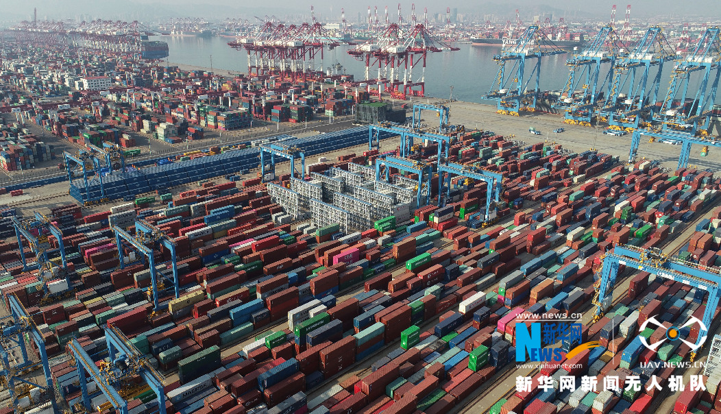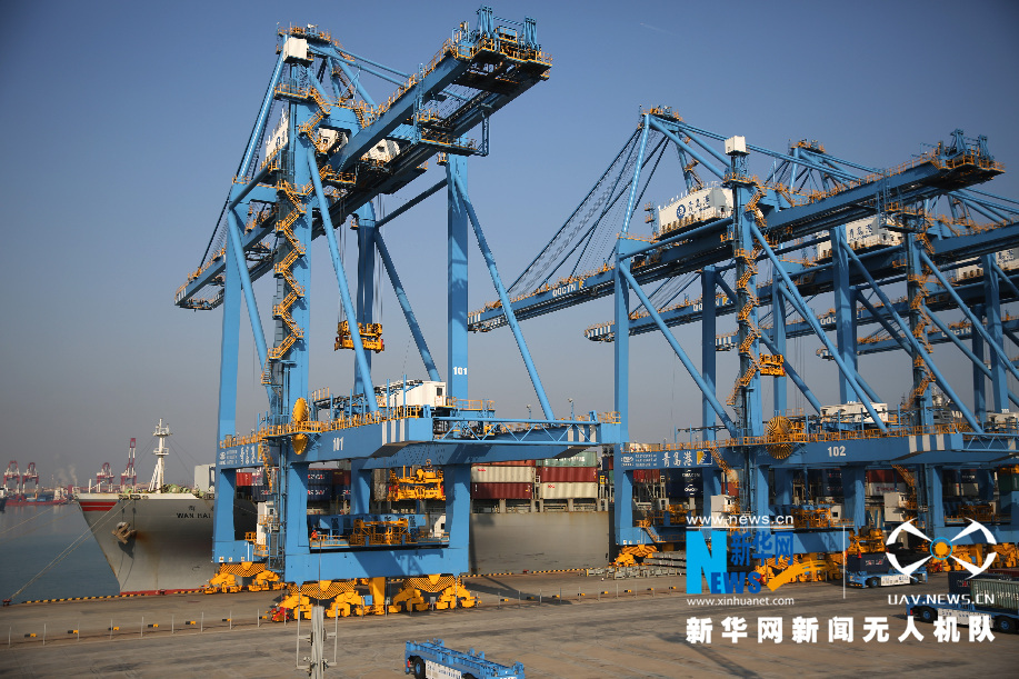 ????2020年1月1日,位于青島西海岸新區(qū)的青島前灣港集裝箱碼頭一片忙碌。新華網(wǎng)發(fā)(張進(jìn)剛 攝)