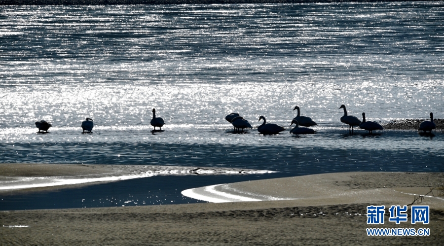 一群天鵝在千姿湖嬉戲。新華網(wǎng) 楊壽德攝