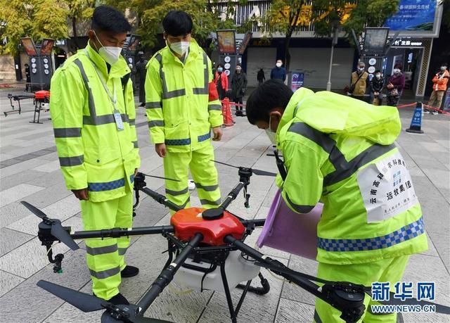 2月27日,遠牧集團無人機志愿防疫隊隊員在給無人機添加消毒液。經主管部門批準,自2月10日以來,遠牧集團無人機志愿防疫隊與當地政府合作,每天出動8架無人機飛行在昆明市的公共活動區(qū)域,進行噴灑消殺。新華社記者 楊宗友 攝