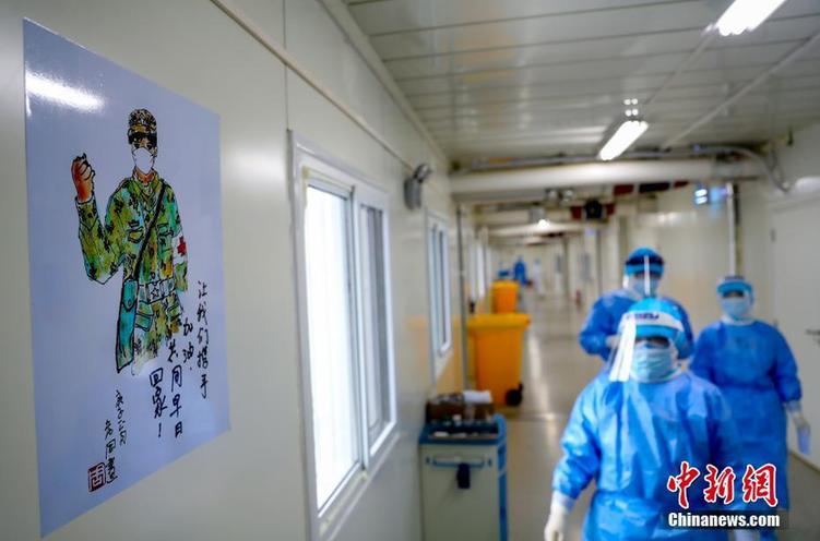 3月2日,武漢火神山醫(yī)院病區(qū)內(nèi),一幅幅勵志漫畫,一首首信心滿滿的詩歌,讓原本素色冷清的走廊變得溫暖起來,也傳遞著白衣戰(zhàn)士們戰(zhàn)勝疫情的決心和勇氣。中新社記者 張暢 攝