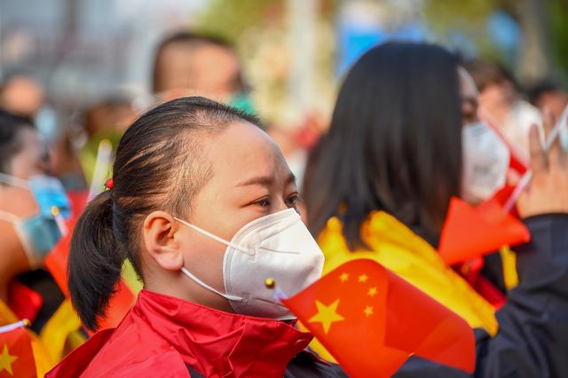 3月21日,黑龍江醫(yī)療隊(duì)員彭晗在湖北省漢川市的告別儀式上擦拭眼淚。當(dāng)日,黑龍江省對(duì)口支援湖北省孝感市的醫(yī)療隊(duì)全體返程。醫(yī)療隊(duì)分別從漢川市、應(yīng)城市、安陸市離開(kāi),前往武漢天河機(jī)場(chǎng)。新華社記者胡虎虎攝影報(bào)道