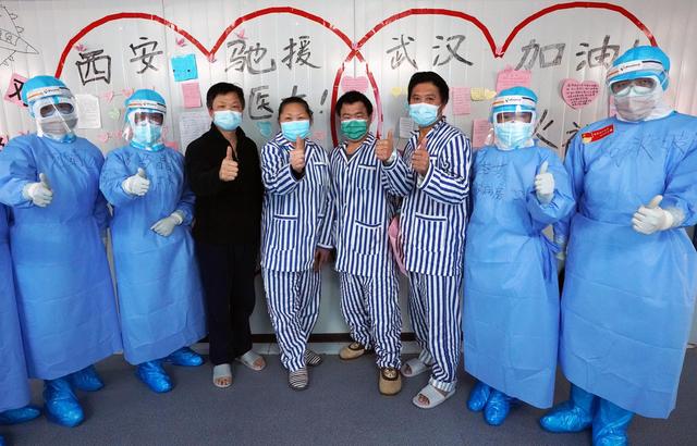 新華社照片,武漢,2020年3月21日 火神山醫(yī)院推出“家病房”護(hù)理模式當(dāng)日病愈出院的患者在“心連心許愿墻”前與醫(yī)護(hù)人員合影留念(3月20日攝)?;鹕裆结t(yī)院感染三科一病區(qū)針對新冠肺炎患者的特點(diǎn),推出了“家病房”護(hù)理模式,從溫情照料、精準(zhǔn)護(hù)理、健康教育、特色照顧等四個方面實(shí)施,讓患者從入院起就享受家庭的溫暖。新華社記者王毓國攝