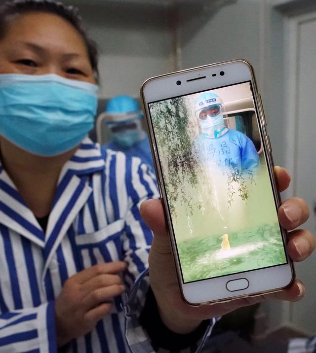 新華社照片,武漢,2020年3月21日 火神山醫(yī)院推出“家病房”護(hù)理模式患者馬女士展示自己發(fā)表于抖音的視頻作品(3月20日攝)。馬女士將護(hù)士們辛勤工作的情景拍成視頻,發(fā)表于抖音,獲得不少粉絲點(diǎn)贊。火神山醫(yī)院感染三科一病區(qū)針對新冠肺炎患者的特點(diǎn),推出了“家病房”護(hù)理模式,從溫情照料、精準(zhǔn)護(hù)理、健康教育、特色照顧等四個方面實(shí)施,讓患者從入院起就享受家庭的溫暖。新華社記者王毓國攝