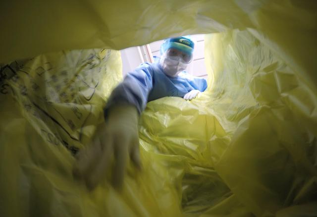 新華社照片,武漢,2020年3月21日 火神山醫(yī)院推出“家病房”護(hù)理模式負(fù)責(zé)保潔工作的周航在更換病房醫(yī)療垃圾袋(3月20日攝)。病房區(qū)的垃圾隨時清理,保持環(huán)境衛(wèi)生?;鹕裆结t(yī)院感染三科一病區(qū)針對新冠肺炎患者的特點(diǎn),推出了“家病房”護(hù)理模式,從溫情照料、精準(zhǔn)護(hù)理、健康教育、特色照顧等四個方面實(shí)施,讓患者從入院起就享受家庭的溫暖。新華社記者王毓國攝