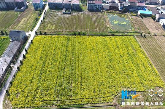 圖為南潯區(qū)千金鎮(zhèn)盛開的油菜花。新華網(wǎng) 張靈攝