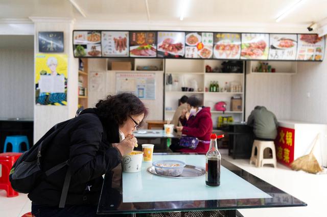 ↑4月1日,市民在襄陽市樊城區(qū)一家早餐店吃早餐。