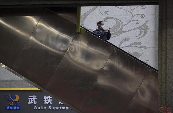 4月7日晚,一名旅客在武昌火車站拍攝站內(nèi)情景。 4月8日零時(shí)起,武漢市正式解除離漢離鄂通道管控措施,有序恢復(fù)對(duì)外交通。新華社記者 費(fèi)茂華 攝