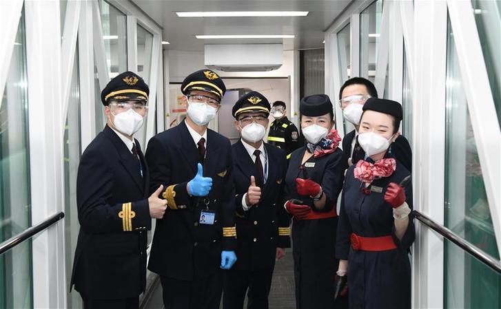 4月8日,東方航空MU2527航班從武漢天河國際機(jī)場(chǎng)起飛,目的地為三亞。這標(biāo)志著武漢機(jī)場(chǎng)暫停商業(yè)客運(yùn)航班76天后正式復(fù)航,這是機(jī)組成員在起飛前合影。 4月8日零時(shí)起,武漢市正式解除離漢離鄂通道管控措施,有序恢復(fù)對(duì)外交通。 新華社記者 程敏 攝