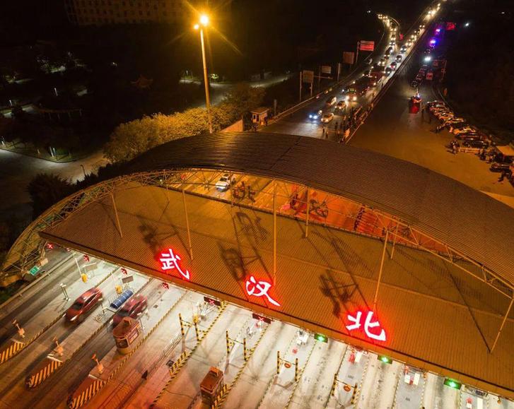 ▲ 4 月 8 日凌晨,車輛通過(guò)武漢北高速收費(fèi)站。