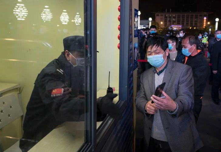 ▲ 4 月 7 日晚,旅客在武昌火車站向工作人員出示健康碼。
