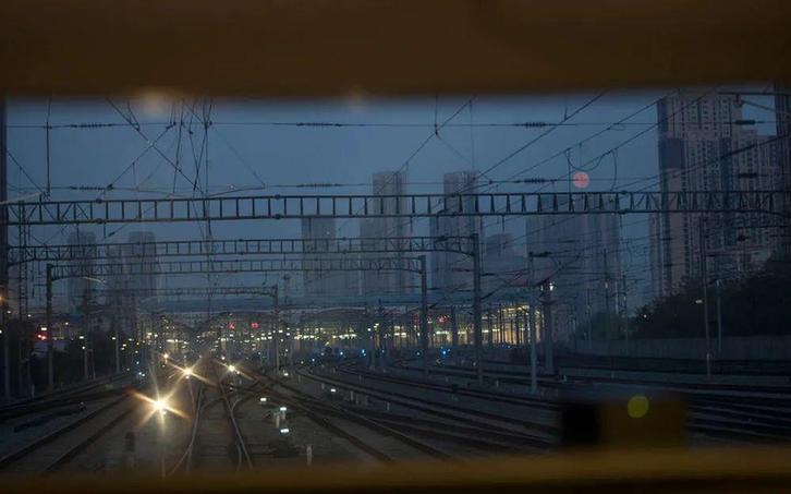 ▲ 4 月 8 日,D9301 次列車從機(jī)庫(kù)駛向漢口站時(shí),從駕駛室里可以看到當(dāng)天的 " 超級(jí)月亮 "。