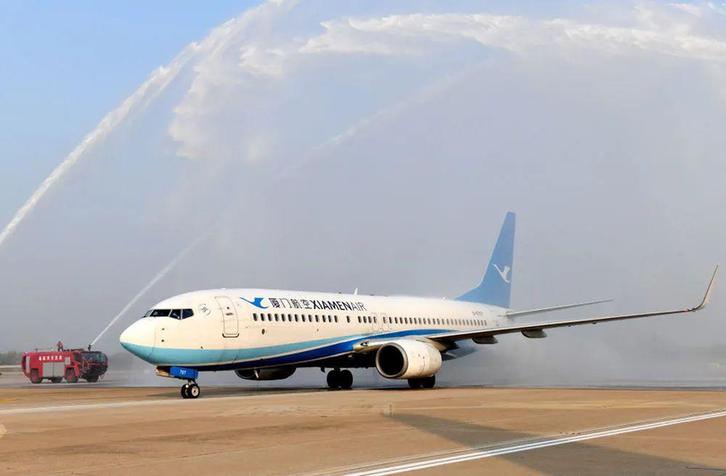 ▲ 4 月 8 日,廈門航空 MF8095 杭州 - 武漢航班平穩(wěn)落地武漢天河機(jī)場(chǎng),成為武漢 " 解封 " 以后首個(gè)武漢進(jìn)港客運(yùn)航班。機(jī)場(chǎng)用兩道水門的禮遇迎接該航班。