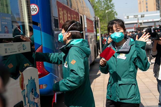 ↑4月15日,武漢市民自發(fā)上街送別北京協(xié)和醫(yī)院國家援鄂抗疫醫(yī)療隊(duì)。當(dāng)日,北京協(xié)和醫(yī)院國家援鄂抗疫醫(yī)療隊(duì)約180人啟程回京。他們1月26日抵達(dá)武漢,也是最后一批離鄂離漢的國家醫(yī)療隊(duì)。過去兩個(gè)多月,先后有4.2萬余名來自全國各地的醫(yī)務(wù)工作者集結(jié)湖北,與本地醫(yī)務(wù)人員一道,展開了一場艱苦卓絕的湖北保衛(wèi)戰(zhàn)。新華社記者熊琦 攝影報(bào)道