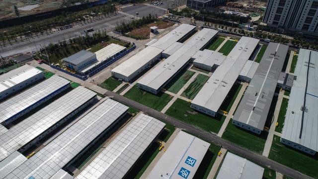 ↑4月15日拍攝的武漢雷神山醫(yī)院(無人機照片)。