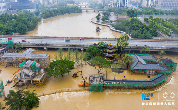6月28日,重慶市南川區(qū),被洪水淹沒(méi)的涼亭。新華網(wǎng)發(fā)(甘昊旻 攝)