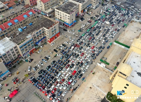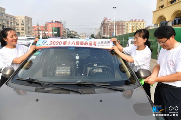 7月3日,“愛(ài)心送考”的車主在安徽省亳州市光明東路參加2020年第十六屆愛(ài)心送考啟動(dòng)儀式。新華網(wǎng)發(fā)(劉勤利 攝)