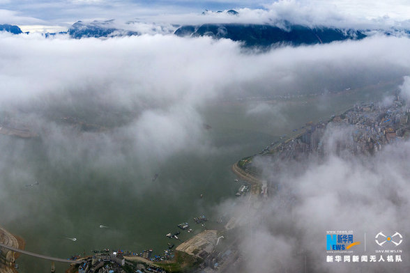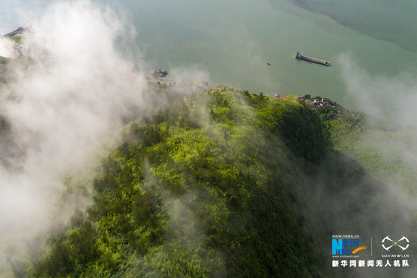 船行在煙波云霧中…… 新華網(wǎng)發(fā)(朱云平 攝)