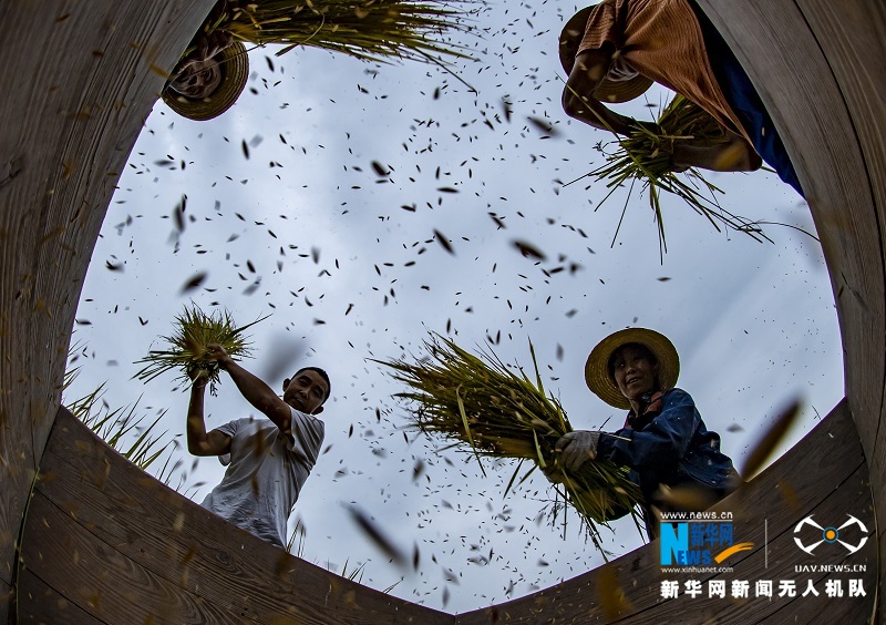 圖為秭歸農(nóng)民確保秋糧顆粒歸倉。新華網(wǎng)發(fā)(鄭家裕 攝)