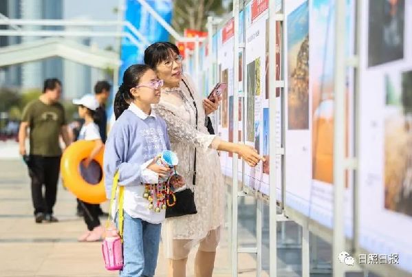 記者在現(xiàn)場(chǎng)看到,在“莊嚴(yán)的承諾”脫貧攻堅(jiān)優(yōu)秀攝影作品展前,一對(duì)父子正在仔細(xì)閱讀?!斑@是一次受教育的過(guò)程,讓兒子多接觸一些正能量,培養(yǎng)一顆愛(ài)國(guó)的心。”游客鄭成生告訴記者,趁著十一黃金周,他選擇帶著兒子出來(lái)走一走,看一看?!皼](méi)想到在日照不光能欣賞美麗的風(fēng)景,還能欣賞到這么高水平的攝影作品。讀萬(wàn)卷書(shū)、行萬(wàn)里路,這次日照行,真是不虛此行。”
